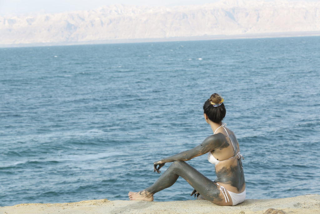 Autre point important, je vous conseille de porter des tongs ou autre, j’ai eu la mauvaise idée de me balader pieds nus et j’en ai souffert pendant tout le reste du séjour. Après un bain dans la mer morte, l’idéal c’est de se prêter au jeu de Cléopâtre et de s’envelopper avec de la boue, très riche également en minéraux. Un véritable spa à ciel ouvert. Ce bain de boue atténue l’effet irritant du sel sur la peau qui finira douce et hydratée.